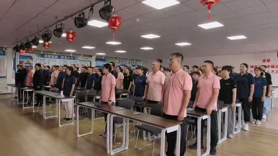 當(dāng)雄壯的國(guó)歌聲響起,公司領(lǐng)導(dǎo)班子成員和全體員工整齊起立,高唱中華人民共和國(guó)國(guó)歌,表達(dá)對(duì)偉大祖國(guó)的崇高敬意。